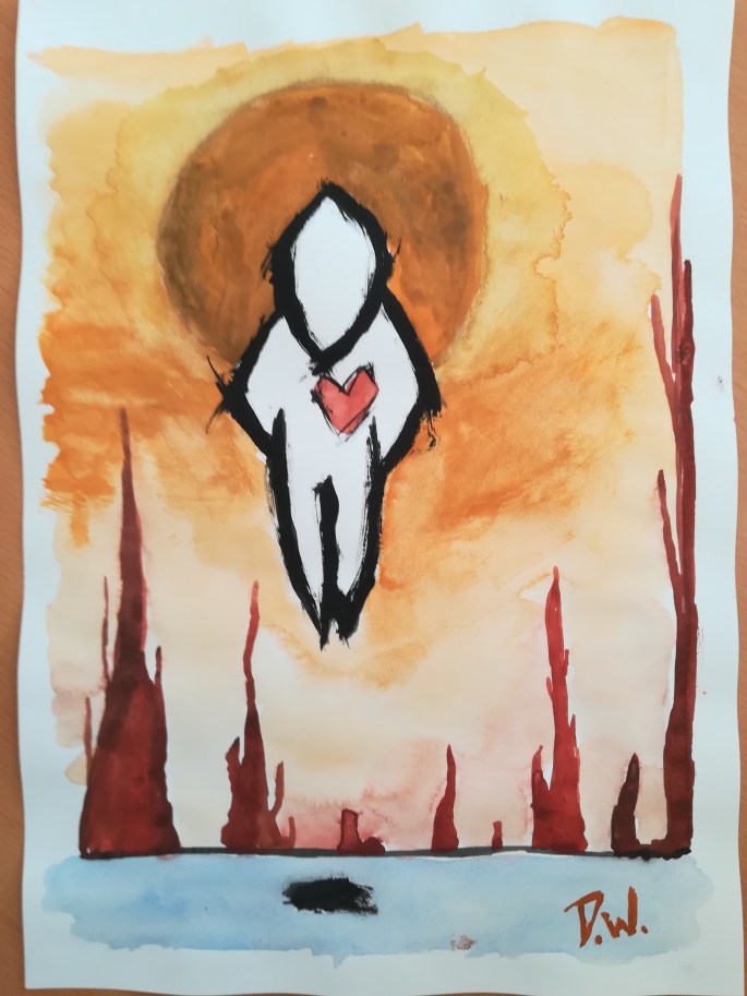 (Alle hier abgebildeten Werke sind von hohem persönlichem und individuelle entwicklungspychologsichem Wert. Darum sind diese unverkäuflich. Können auf Anfrage aber als ähnliches Original von mir für Sie erstellt werden.)